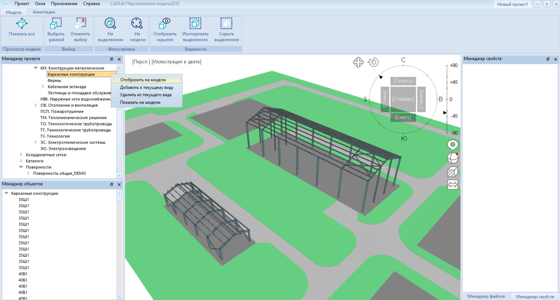 Наряду со стандартными структурами зданий/сооружений и разделами проекта, для отображения объектов могут использоваться пользовательские классификаторы, созданные в CADLib Модель и Архив и сохраненные в файле MLT.