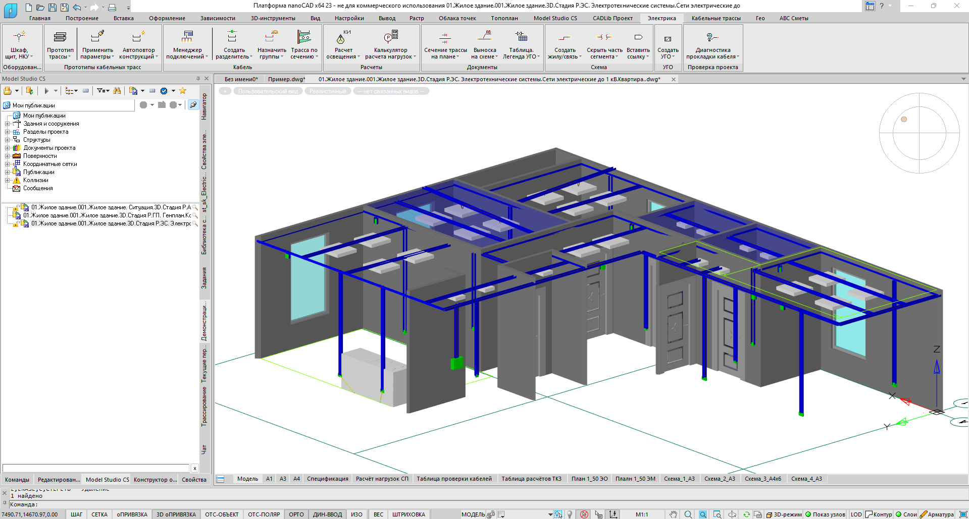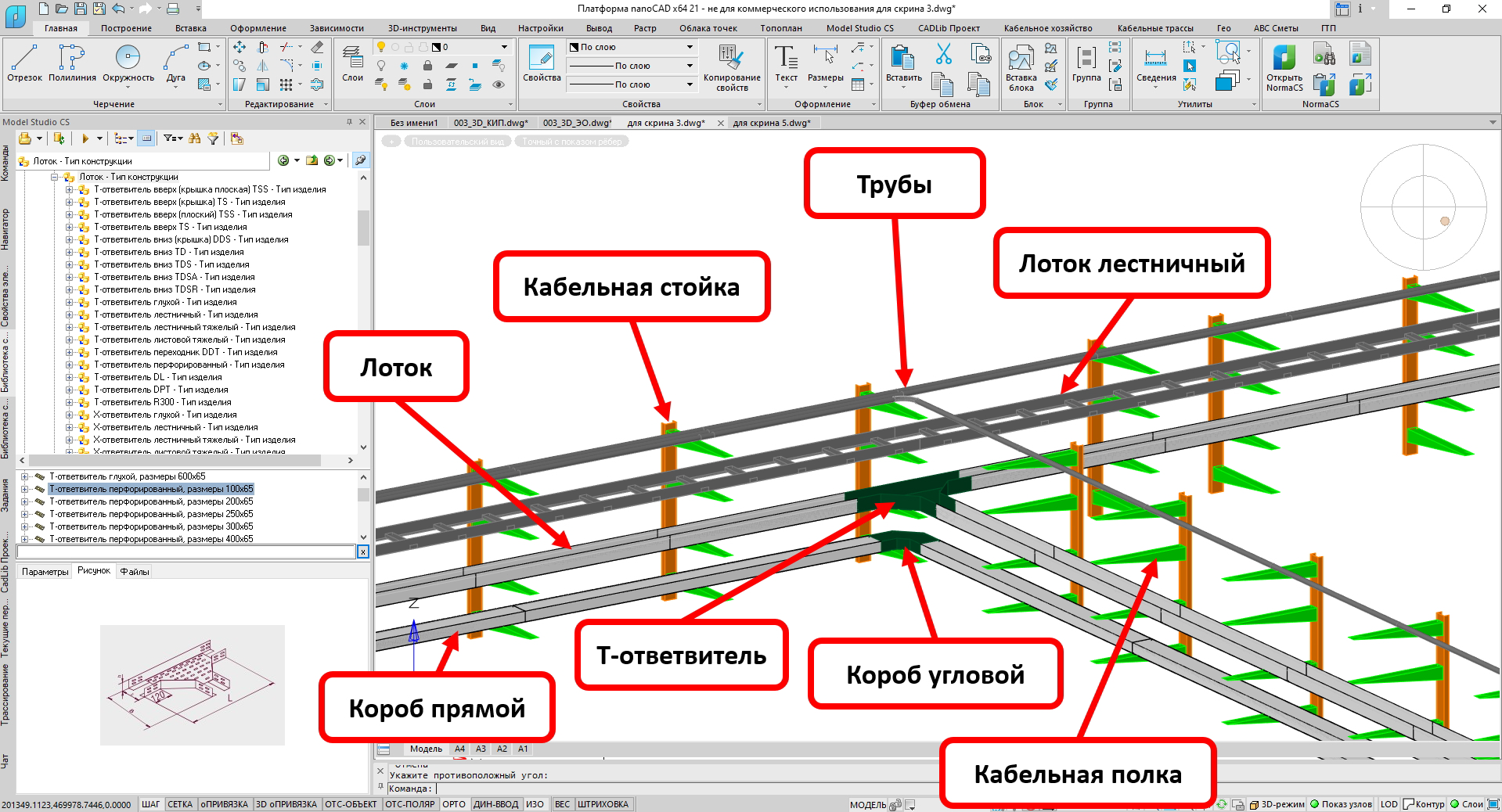 База данных стандартных компонентов Model Studio CS Электрика встроена в среду проектирования и не требует запуска дополнительных программ. Доступ осуществляется через удобное диалоговое окно. База включает разделы «Электротехническое оборудование», «Кабельные конструкции», «Кабельно-проводниковая продукция» и другие. Объекты содержат параметры, необходимые для расчетов, проектирования и подготовки документации.